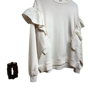Zara Ivory Ruffle Sleeve Sweatshirt NWOT Size 13–14 Fits Women’s M