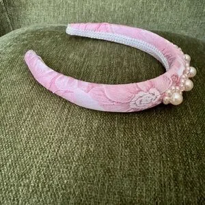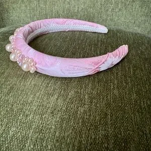 anthropologie headband, sister jane, pearl headband, pink headband, embellished headband, statement accessory, bridal accessory, feminine style, cottagecore