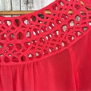 This elegant red women's top features a stylish cutout design, perfect for any occasion. The vibrant color adds a pop of style to your wardrobe.