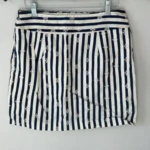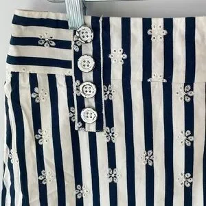Brooklyn Industries navy & white button front skirt with embroidered eyelets