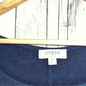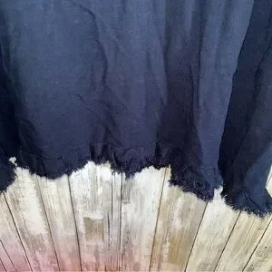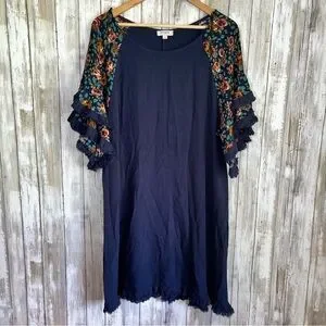 Umgee Navy Printed Accent Flutter Sleeve Fray Edge Dress