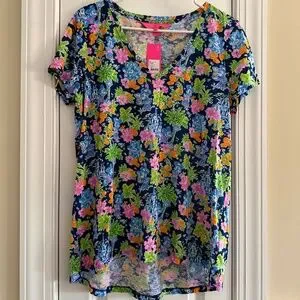 NWT Lilly Pulitzer Etta v-neck t-shirt in Lilly Loves Disney Aegean Navy Size L