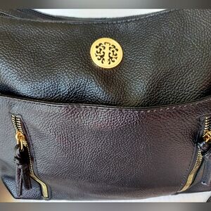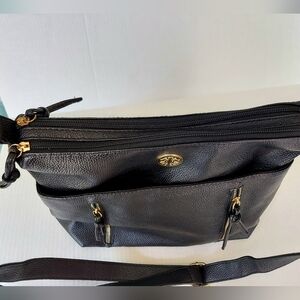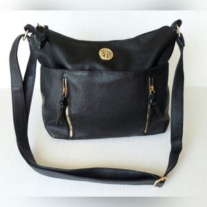 Genuine Leather Crossbody Bag, Black/Gold, Adjustable, Storage. Like NEW!!