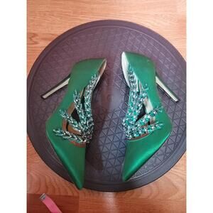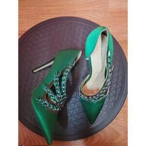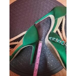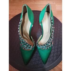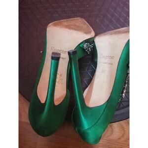 EUGENE RICONNEAUS GREEN SATIN/LEATHER STUDDED LEAF heels shoes ART Size 38 $1260