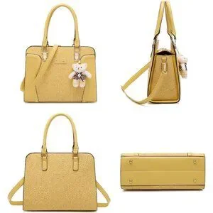 Women's Yellow Faux Leather Top Handle High Quality Smooth Zippers Tote Bag