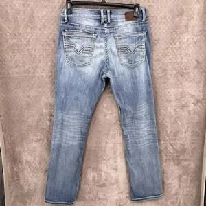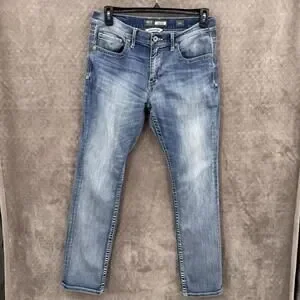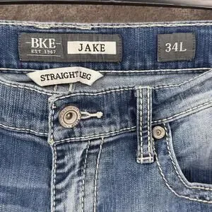 BKE Jake Jeans Mens 34x34/32 Blue Medium Wash Straight Denim Embroidered Pockets