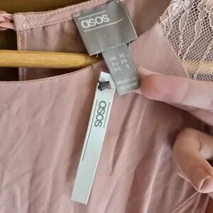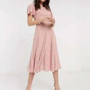 Asos Dress Dusty Rose Pink Lace Panel Midi Swing Romantic Prep NWT 6 Bridesmaid