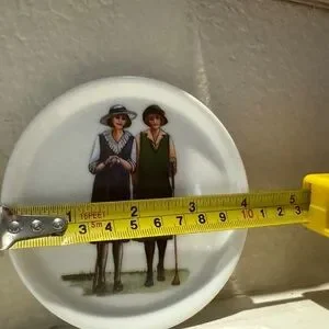 Excellent condition vintage set of three ceramic coasters featuring women golfers.