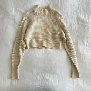 Intermix 'Fay' Cropped Turtleneck Sweater In Ivory