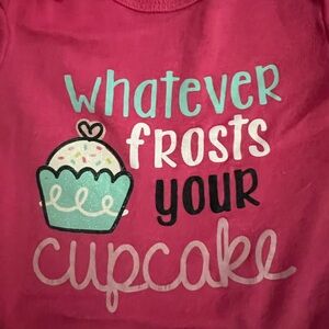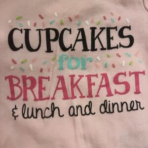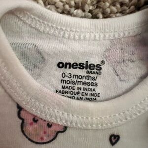 Adorable assorted onesies with cupcake and donut prints. Includes solid pink, mint donut graphic, white with colorful cupcake pattern, striped multicolor, and pink cupcake slogan. Soft and playful designs. Great for everyday wear.