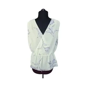 Chic sleeveless blouse with floral design. Light yellow color. Ideal for casual or office wear.