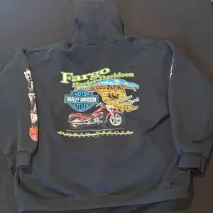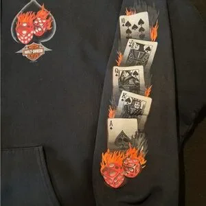 The product is a highly sought-after collectible item, a rare 2005 Harley Davidson motorcycle with a unique feature of flaming dice on the gas tank. This specific bike was registered in Fargo, North Dakota, adding to its charm and authenticity. It also comes with a card sleeve for safekeeping and display, making it a prized possession for motorcycle enthusiasts and collectors alike. This limited edition piece is sure to be a standout addition to any Harley Davidson collection.