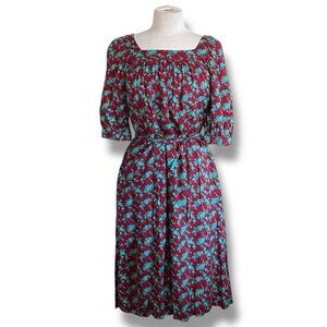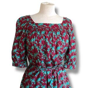 Vintage 1970s Ilse Smith For Reuben Thomas Dress Sz Small Brown Floral Blouson