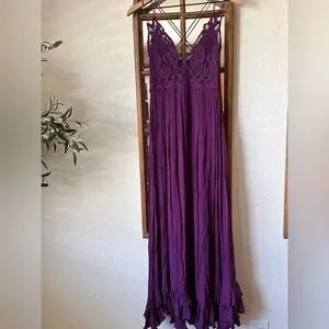 Free People FP One Purple Crochet Lace Maxi Dress Boho Festival Small