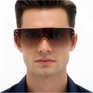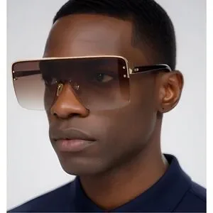 Keywords: oversized sunglasses, shield sunglasses, flat top sunglasses, fashion sunglasses, designer sunglasses,men's sunglasses, rimless sunglasses, gradient lens, gold frame, statement sunglasses, sun glasses, sun protection, UV protection