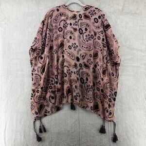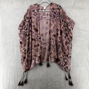 Japna Cardigan S Burn-Out Burgundy Gold Rose Paisley Floral Open Front Tassel