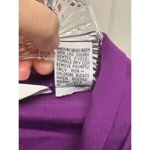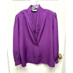 Vintage Sellecca Blouse Purple Padded Shoulders Puff Sleeves V-Neck Size 14