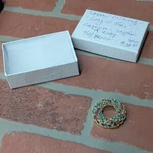 Vintage 1965 Sarah Coventry Multicolored Gold Tone Circle Wreath Brooch Pin Sign