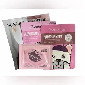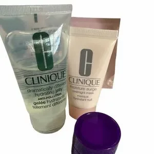 Clinique skincare set featuring a floral bag. Includes creams and a plushie spa headband.