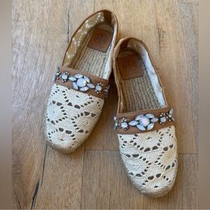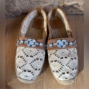 Tory Burch Crochet Embellished Flats Espadrille Sz 10.5 STUNNING PriceFirm!