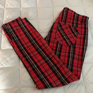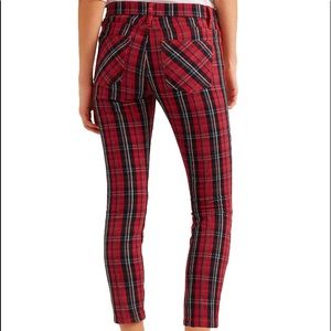 Like new. Worn just once. Current Elliott Tartan plaid, mid rise, slim fit, straight leg, button, zip, multipocket. 99% Cotton, 1% Lycra® MEASUREMENTS Outside leg 35.1 inches, Inside leg 27.3 inches, Width at end 5.46 inches