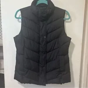 Gap Down Puffer Vest Black Full Zip Snap Button Pockets Insulated Size M