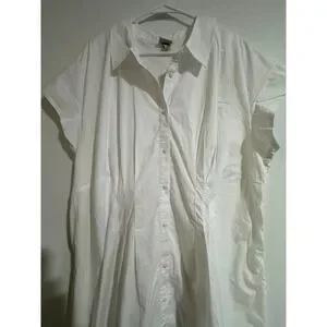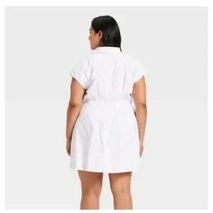 A New Day Mini A-Line Dress Womens 2X 2XL White Button Down Pocket Cottagecore