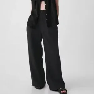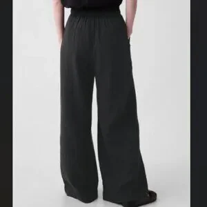 NEW GAP Factory L Black Crinkle Wide-Leg Pull On Pants Lightweight
