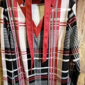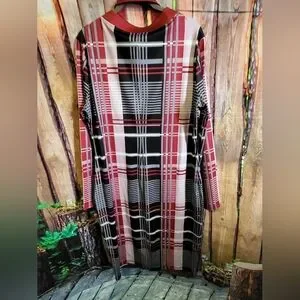Elevate your style with this chic plaid V-neck dress. Featuring a striking red and black pattern, it's perfect for any occasion. Comes with belt.
