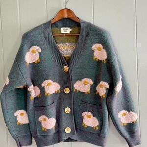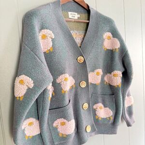 Aelfric Eden Vintage Lamb Knit Cardigan Sweater Flocked Sheep Cottagecore L