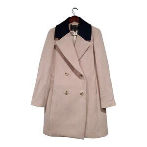 J. Crew Arianna Dusty Pink w/ Navy Collar Contrast TopCoat Wool Blend Size 10