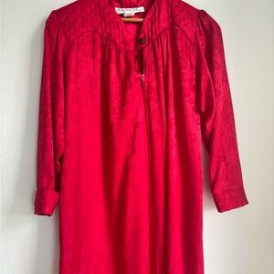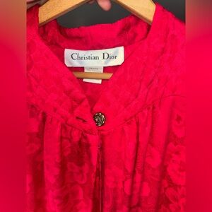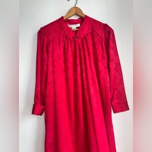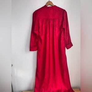 Christian Dior Vintage Nightgown Red Polyester Dress Petite Small Long Sleeve S
