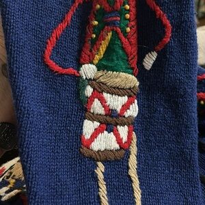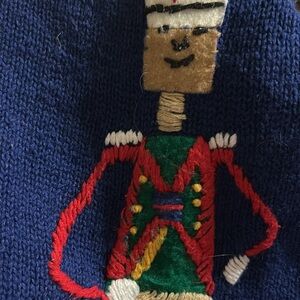 SEGUE women’s size Large Nutcracker sweater. Nutcracker theme on front and on both arms with Stars on back of sleeves. One star is missing a couple beads which is pictured above. This is a great sweater to add to your collection