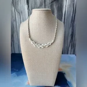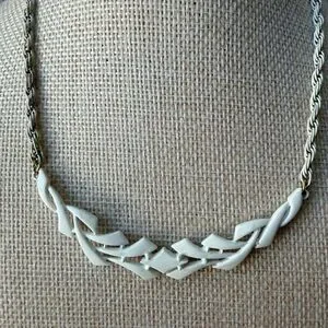 This elegant white vintage crown trifari necklace adds a touch of sophistication to any outfit. Perfect for any occasion.
