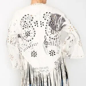 FUAX SUEDE CARDIGAN LASER CUT JACKET WRAP WITH FRINGE....STUNNING PREMIUM QUALITY!!