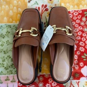 ❤️Time&Tru Women's Backless Loafer Size 10 NWT MemoryFoam Brown&Gold Horsebit