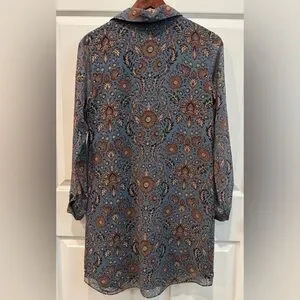 Cabi Provincial Tunic Dress Women’s Size Small Blue Brown Floral Lined