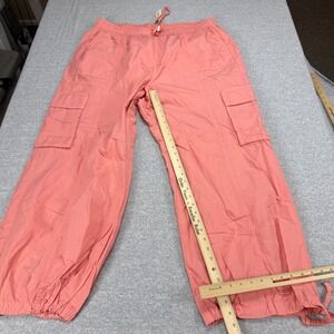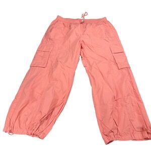 Aerie Womens XXL Coral Pink Cargo Pants Cotton Drawstring Wide Leg MSRP $54