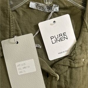 Elena Baldi Army Green Olive Linen knee Length Dress size XL