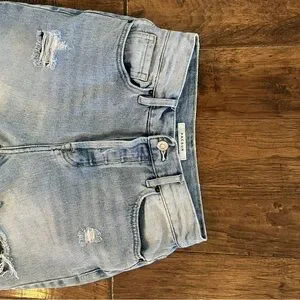 High rise straight jeans from PacSun. Light blue denim with contrast gold stitching and metal rivets. Classic five-pocket style. Clean, casual look.