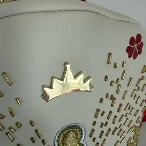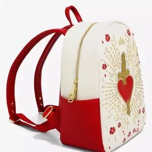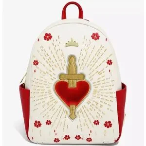Be the most fashionable of them all with this Snow White-inspired mini backpack from Loungefly! Featuring an embroidered front design of the heart and dagger lock on the Evil Queen's Heart Box, this backpack features red floral detailing, adjustable shoulder straps, gold-toned hardware, and an enamel brand badge. A stylish look for fans of the Disney animated classic!