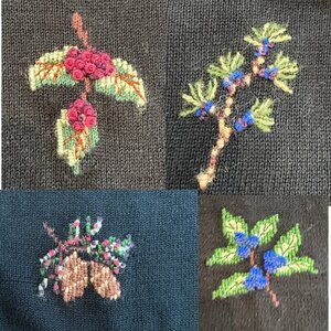 Vintage 90s Embroidered Chunky Knit Embroidered Floral Sweater Size Medium