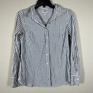 J Crew Women's Haberdashery Stripe Button-Up Shirt Black & White Small