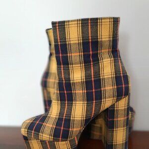 Forever 21 Yellow Plaid Platform Booties Size 6