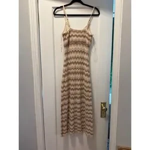 Hollister Crochet Midi Dress Tan Brown Chevron Wave Knit NWT Size 8