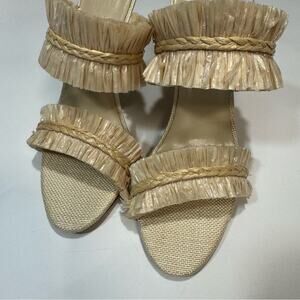 House of Harlow 1960 Frayed Raffia Heel Shoe Cream Boho size 7,5
