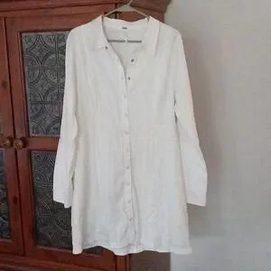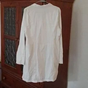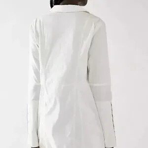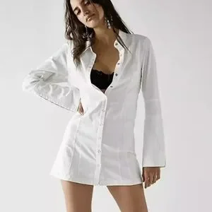 Chic white mini dress. Button-down front. Long sleeves. Perfect for any occasion.