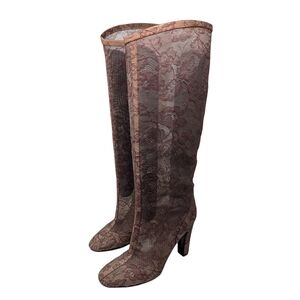 Valentino Garavani Runway Sheer Floral Lace Tall Heeled Statement Boot Size EU38
