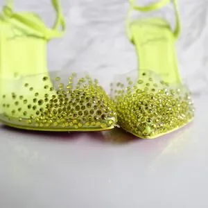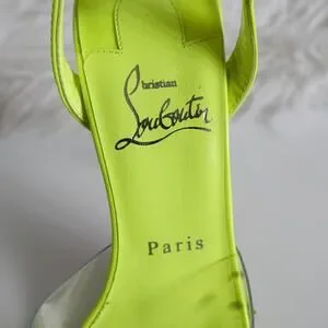 Christian Louboutin Spikaqueen 100 Crystal Neon Yellow Green Clear Pumps Size 37