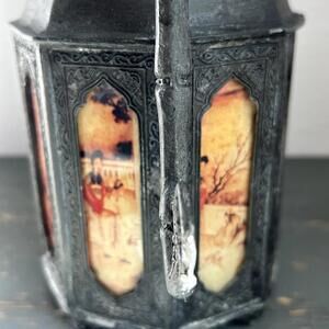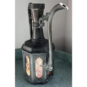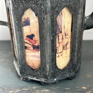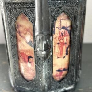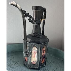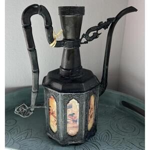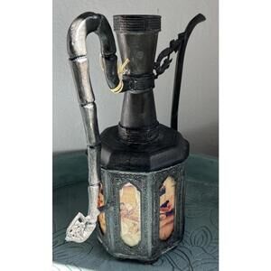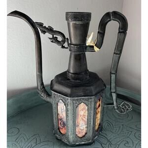 Antique Chinese 1910 Swatow Pewter 8 Panel Reverse Painted Glass Teapot, NO LID